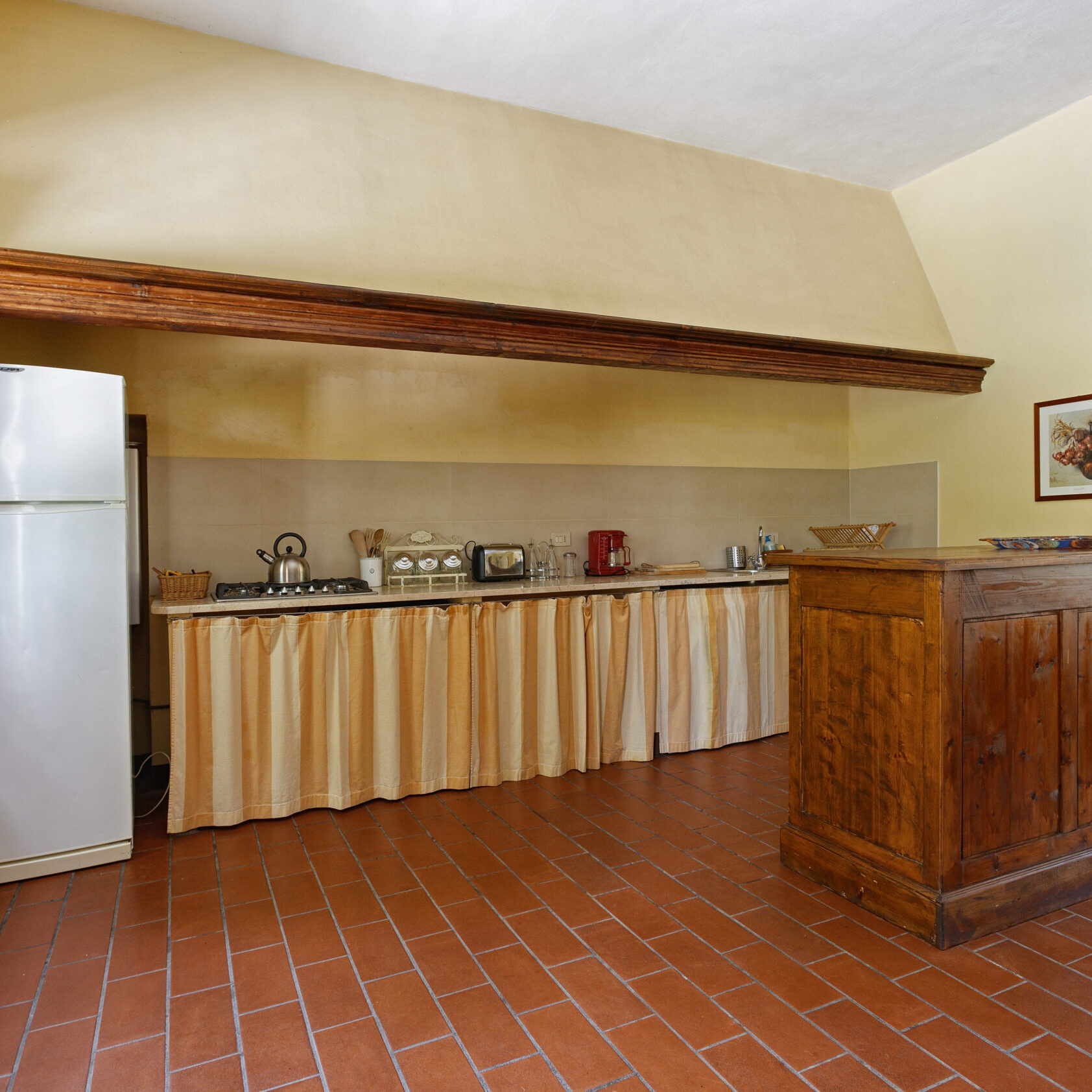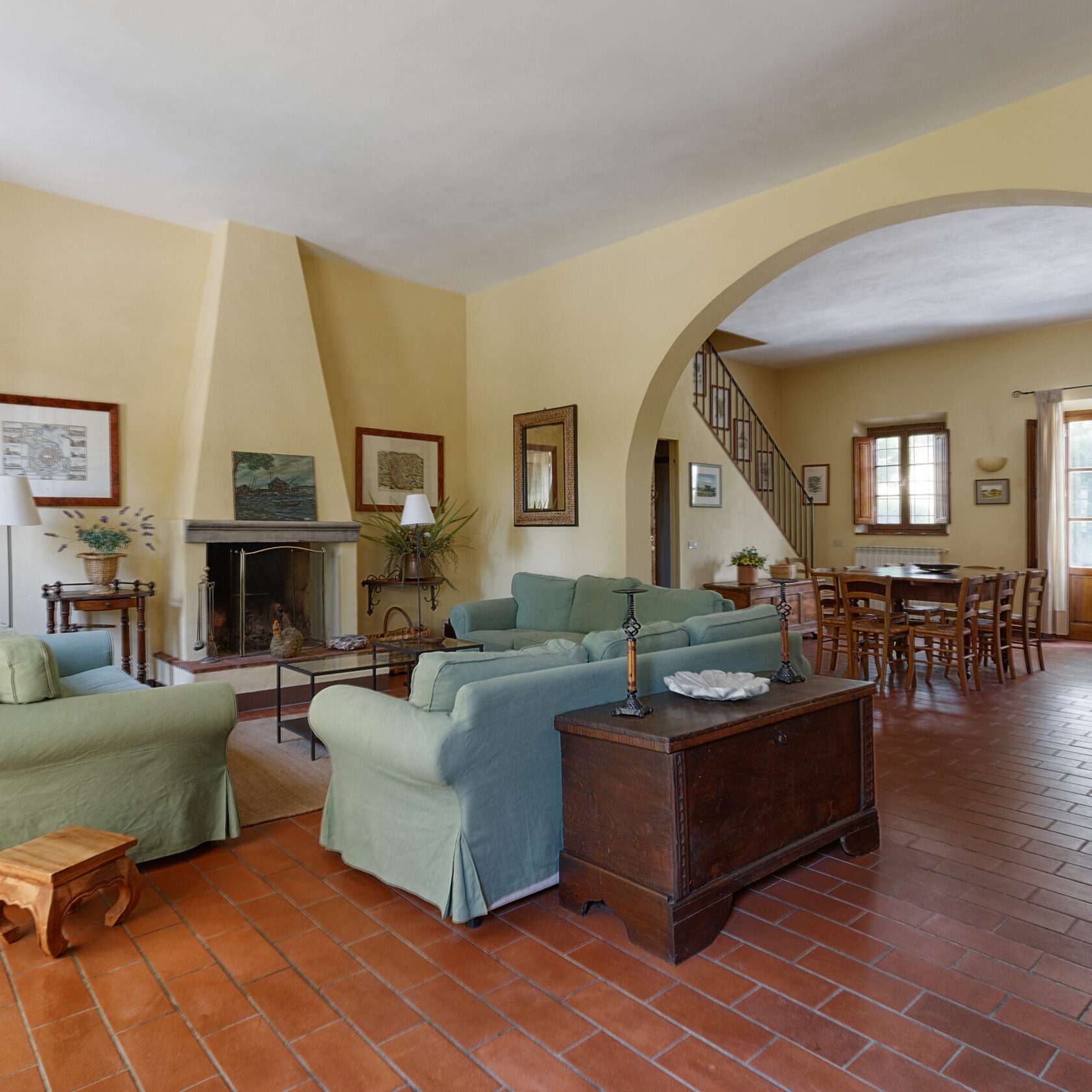 Gruccione est un grand appartement de 10 lits idéal pour les familles nombreuses ou un groupe d'amis. Au premier étage, deux chambres doubles, deux chambres triples et quatre salles de bain avec douche. Au rez-de-chaussée, cuisine équipée avec coin repas et grand salon avec cheminée. L'appartement est équipé d'un lave-vaisselle.
